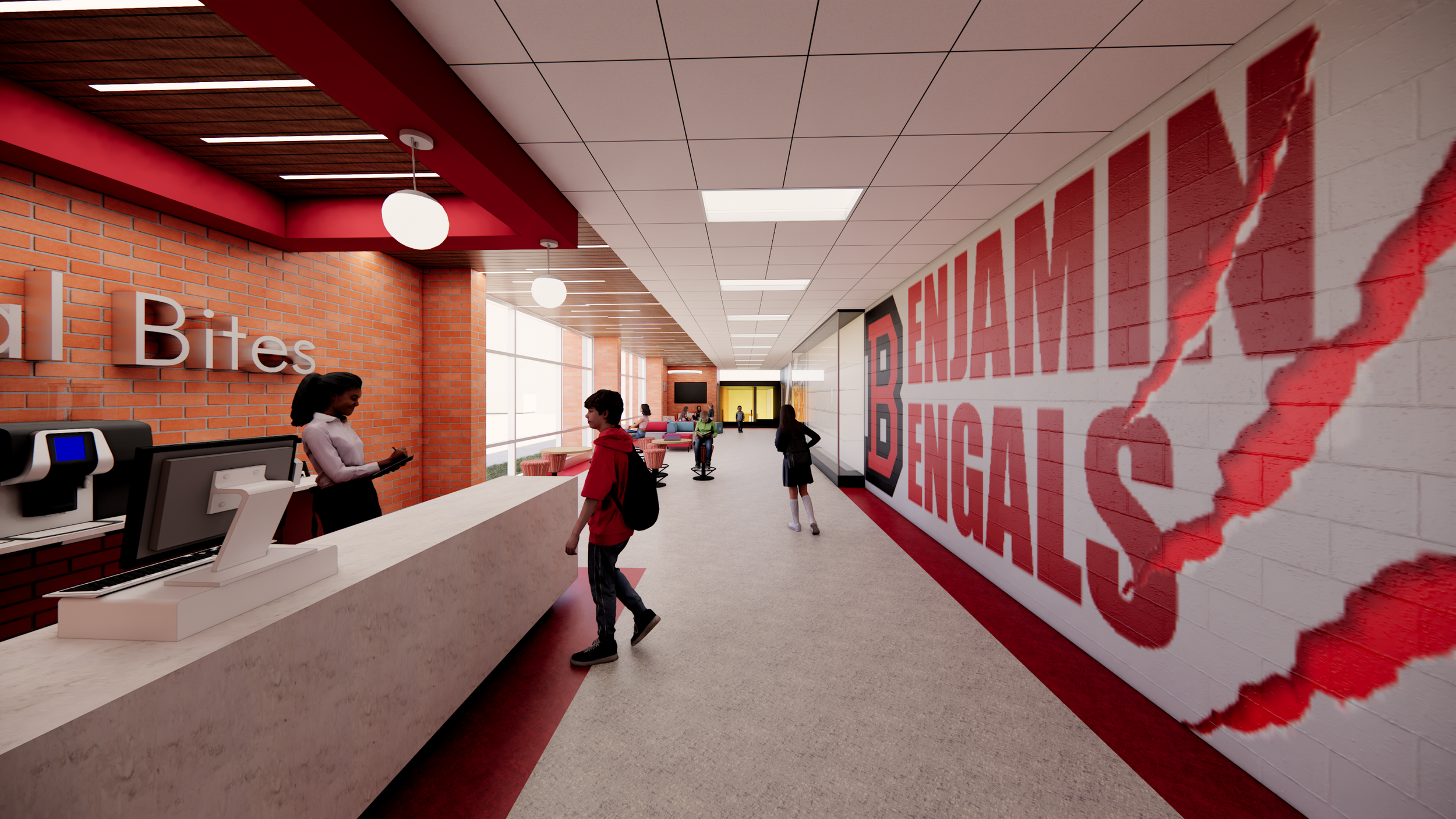 Benjamin School District 25 Benjamin School District 25 Benjamin School District 25 Interior Renovations at Benjamin Middle SchoolLocation: West Chicago, ILRole: Lead Interior DesignerPrograms Used: Revit, Enscape